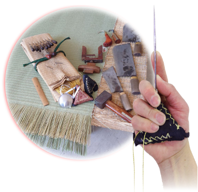 日常の表替え、裏返しの補修作業では、ゴザやワラを1針1針手縫いで仕上げています。月日が経っても型崩れしないよう、長く愛されるよう、見えない所ほど丁寧に、裏ほど綺麗に、美しく仕上がった畳をお届けするために。一人で営む小さな畳屋ですが、どうぞ宜しくお願い致します。
