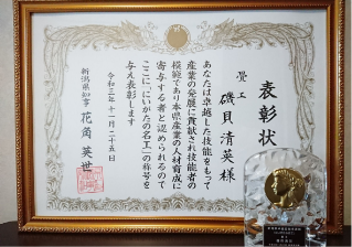 国内トップクラスの熟練技能者が磨いた技を競う厚生労働省主催の第30回技能グランプリで銀賞受賞。2007年より新潟県代表として6度出場し、第25回、第26回、第29回大会では、銅賞を受賞。